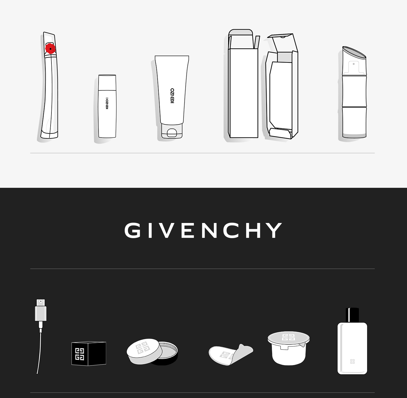 Created a set of clean, minimalist product illustrations for Kenzo and Givenchy’s recycling guide. Focused on accurately representing packaging while aligning with the brands’ luxury aesthetic.